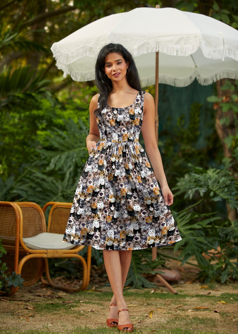 Lasciati conquistare dal fascino retrò dell’abito Drive In Delight Fit&Flare della nostra linea ModCloth. Caratterizzato da una stravagante stampa di gufi, maniche a sbuffo e scollo a cuore, questo abito ti farà sicuramente distinguere. La cintura in vita valorizza la tua figura, mentre le pratiche tasche e la chiusura frontale con bottoni aggiungono un tocco di praticità. Rifinito con una cerniera per una maggiore comodità, è perfetto per una nostalgica serata cinema sotto le stelle. Abbraccia l’atmosfera vintage con questo completo giocoso ma elegante.
