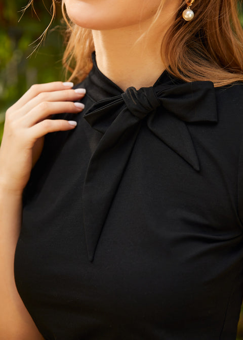 Irradiando uno stile anni ’50, questo top nero con fiocco al collo dell’omonimo marchio ModCloth è un must-have per completare il tuo stile estivo retrò-chic. Quindi, via libera al ballo! Non sei certo una studentessa di estetica in questo capo a maniche corte in stile retrò-chic che vanta un collo alto con un adorabile fiocco laterale e chiusura con asola e bottone sul retro, e maniche corte a sbuffo con chiusura a bottone e asola sui polsini. Realizzata in morbido e elastico cotone a maglia, questa camicia di ispirazione vintage è perfetta per le giornate di sole che stanno per finire.