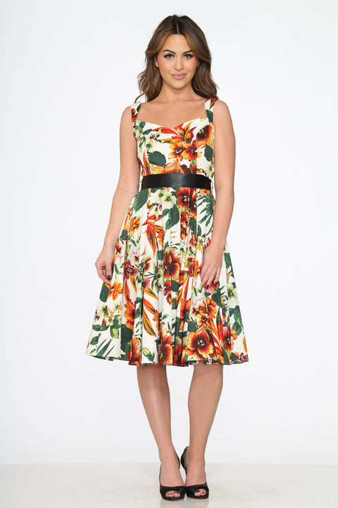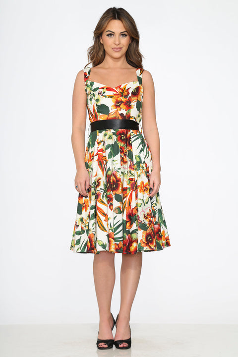 Delicato ed elegante, l’abito a trapezio Prince Lily Floral di Orchid Bloom presenta una splendida stampa floreale ispirata all’eleganza dei gigli in fiore. Con la sua silhouette a trapezio senza tempo e il suo tocco vintage, questo abito è perfetto per feste in giardino, matrimoni o qualsiasi occasione in cui sia richiesto un tocco di romanticismo. Realizzato in una traspirante miscela di cotone e spandex, offre un’elasticità confortevole e una vestibilità che valorizza la figura. Rifinito con una cerniera centrale sul retro e pratiche tasche laterali, offre fascino e praticità. Composizione del tessuto 97% cotone, 3% spandex Tessuto elasticizzato Lunghezza: 104 cm Importato Dettagli del design Cerniera centrale sul retro Tasche laterali