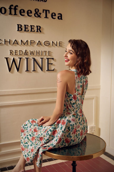 Abito a trapezio rosa a fiori