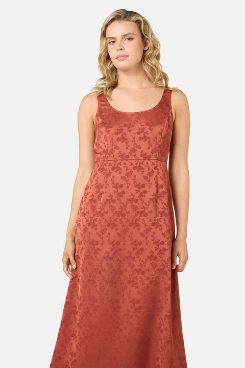 Immergiti in un tocco di nostalgia anni ’90 con l’abito midi Roma in raso con stampa floreale. Realizzato in raso setoso con stampa floreale, questo abito sottoveste midi presenta uno scollo rotondo, una cucitura sottoseno che valorizza la figura e una morbida gonna a trapezio per una silhouette elegantemente disinvolta.