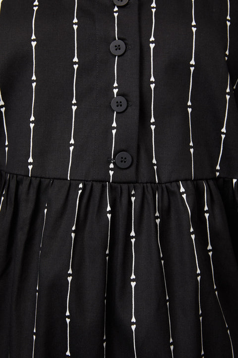 Entra nello spirito spettrale con il grembiule con ossa divertenti, un capo di ispirazione gotica che aggiunge un tocco giocoso al tuo guardaroba. Caratterizzato da una grafica a righe con ossa su tutta la superficie, questo grembiule dalla vestibilità rilassata combina vibrazioni dark e spigolose con un design divertente e stravagante. Lo stile senza maniche e lo scollo rotondo offrono versatilità, mentre la lunghezza midi offre una silhouette lusinghiera e facile da indossare.