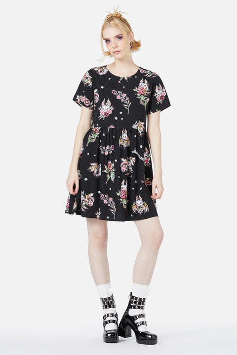 Lascia che il tuo lato eccentrico risplenda con l’abito Fruity Bats, una creazione giocosa e artistica che dona un tocco di estro al tuo guardaroba. Questo abito dalla vestibilità rilassata presenta una gonna arricciata in vita per una silhouette che valorizza la figura, insieme a pratiche tasche laterali che lo rendono funzionale e divertente. La chiusura con zip sul retro assicura una facile vestibilità, mentre le maniche corte lo rendono perfetto da indossare a strati o da solo.