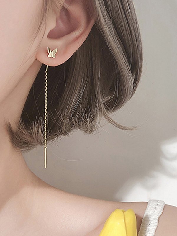Pendientes colgantes de cadena con borla y dije de mariposa