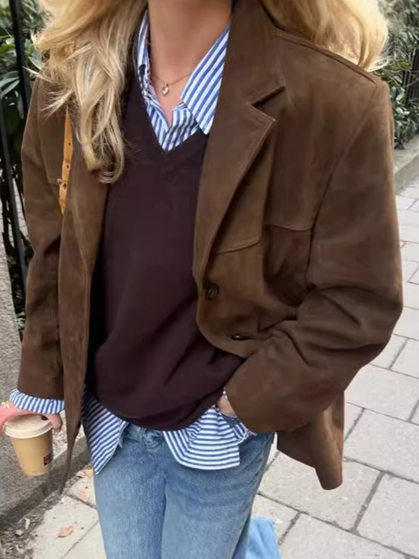 Chaqueta básica de colores sólidos estilo ropa de trabajo