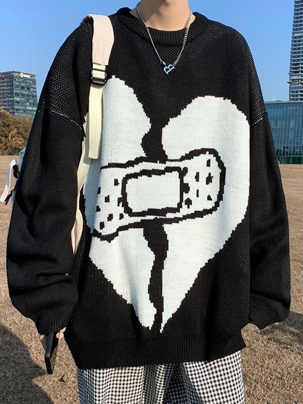 Suéter tridimensional con cuello redondo y decoración de corazones para hombre