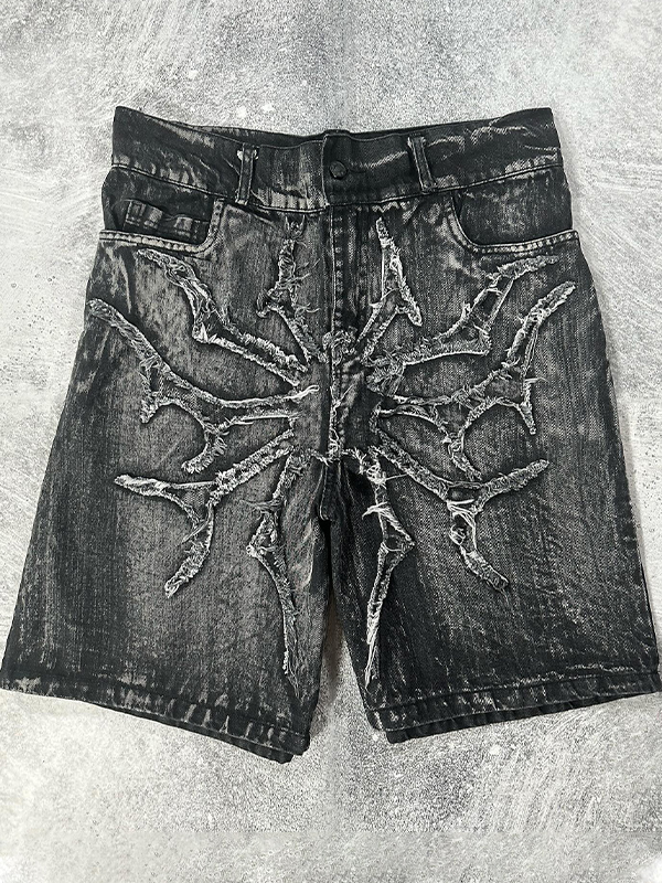 Pantalones cortos de mezclilla desgastados sueltos retro para hombre