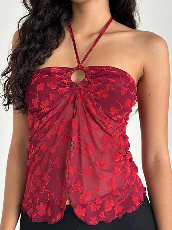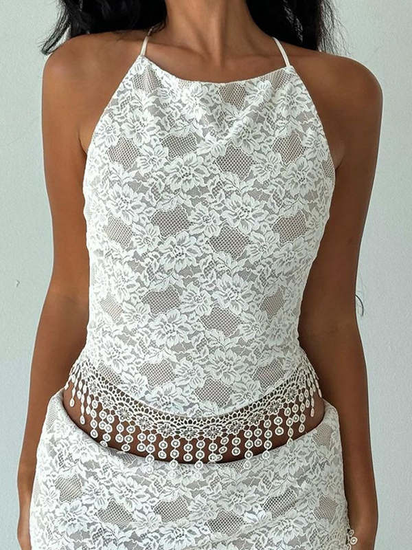 Chaleco halter ajustado con encaje hueco