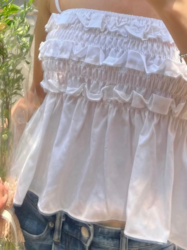 Chaleco halter con dobladillo de pendiente de madera y volantes