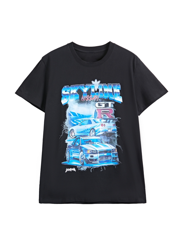 Camiseta de manga corta con estampado de letras de ante vintage para hombre