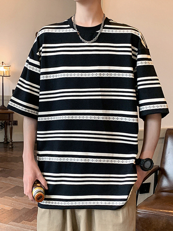 Camiseta extragrande de manga corta con estampado de rayas urbanas para hombre