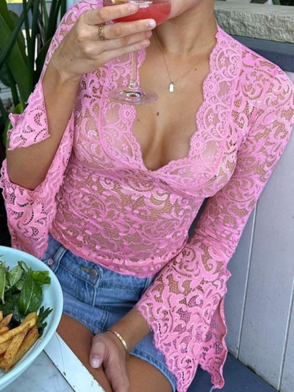 Camiseta de manga larga con encaje