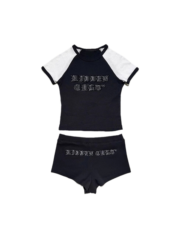 Camiseta de manga corta con cuello en V y encaje en bloques de color