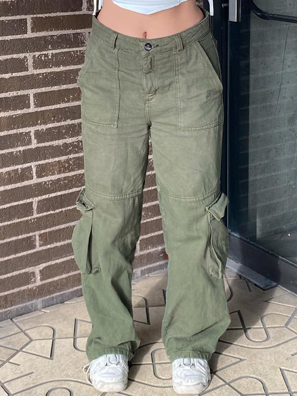 Vaqueros cargo con múltiples bolsillos desgastados y lavados retro