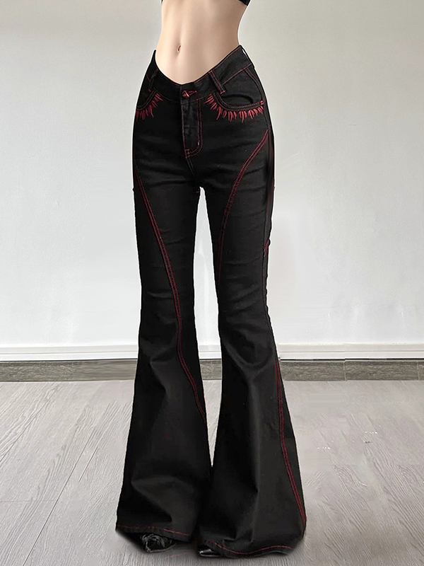Vaqueros acampanados con cuentas y bordado de mariposas