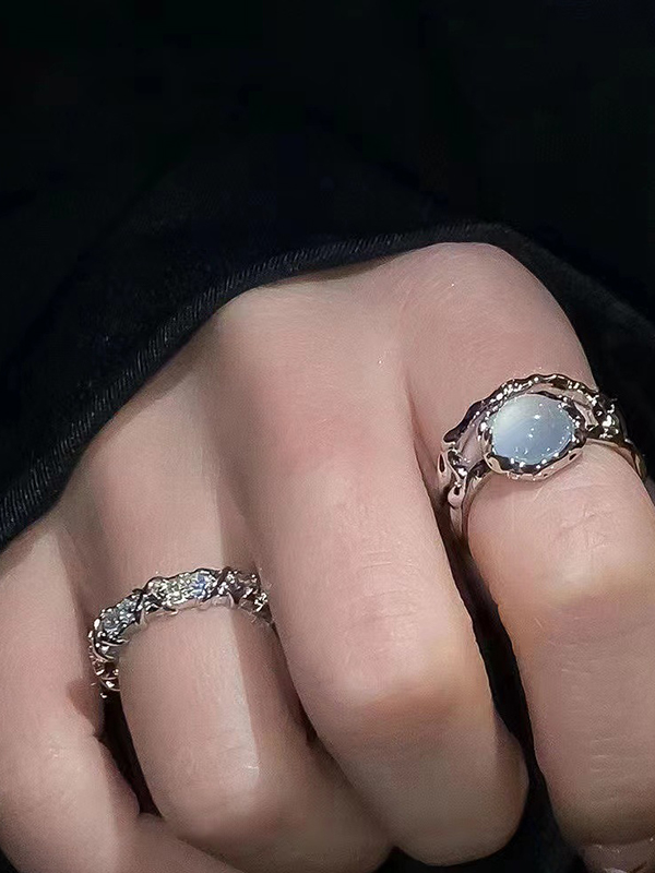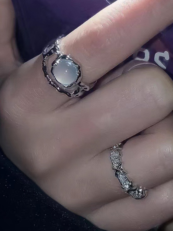 2 piezas anillo de puño con diamante y piedra lunar Fairycore