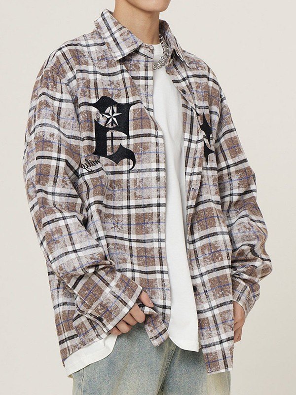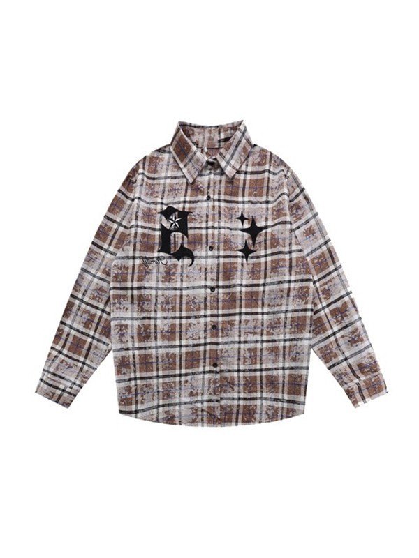 Longitud de la manga: Manga larga< br />Descripción: Con un estampado inspirado en los cuadros de teñido anudado, estas elegantes camisas de chico urbano tienen una silueta favorecedora, cuentan con el logotipo de la estrella bordado en la parte delantera y terminan con un diseño de cierre de botones.