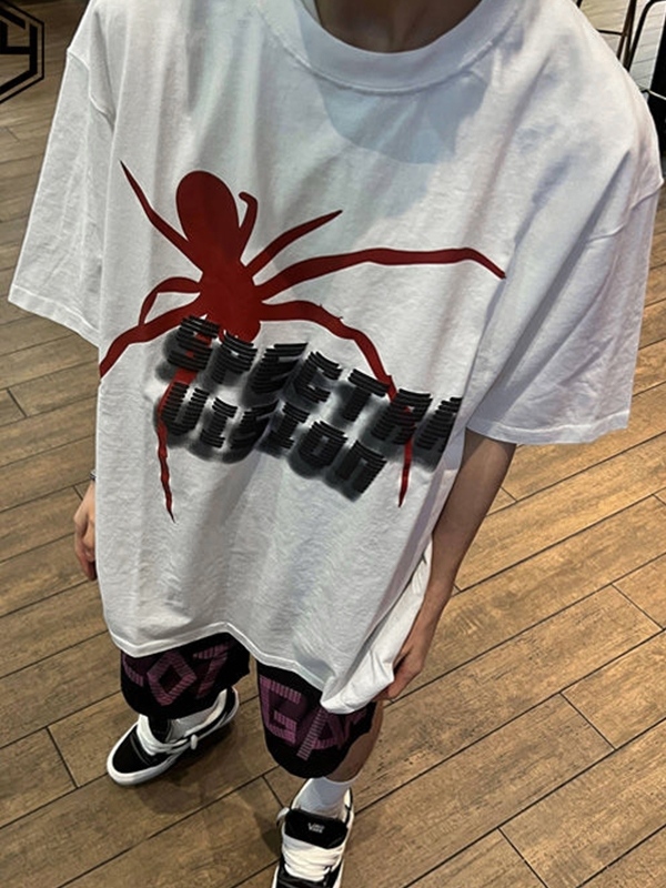 Camiseta de manga corta con estampado de letra de araña para hombre