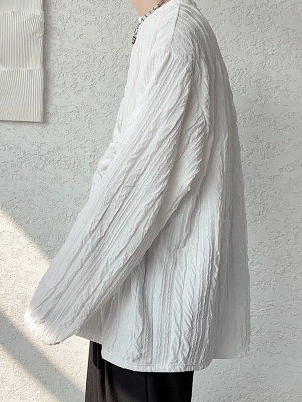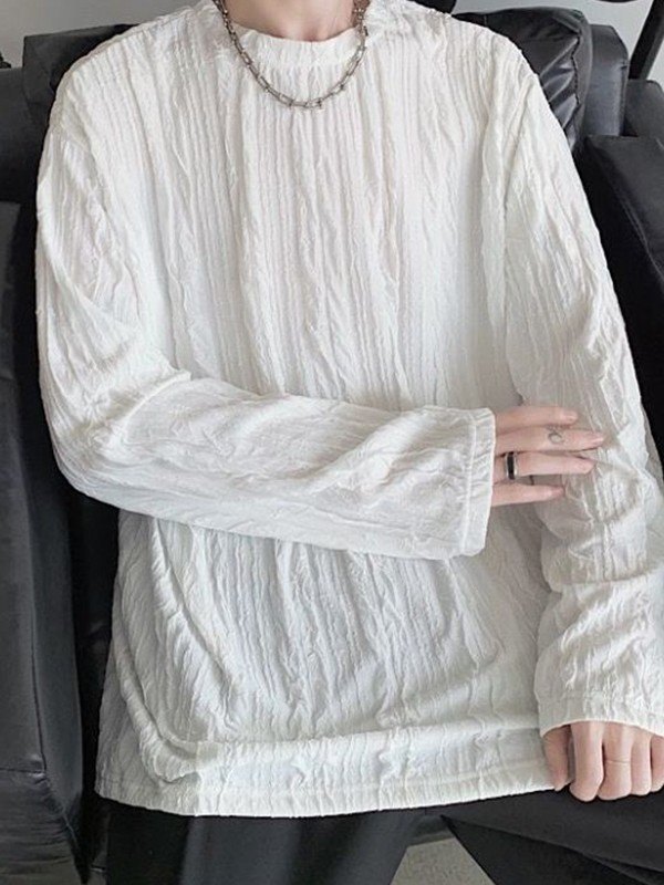 >Descripción: se actualizaron algunas camisetas versátiles de manga larga para atuendos interiores básicos. Esta camiseta para hombre tiene una silueta ajustada y un diseño de textura fruncida en todo el cuerpo.