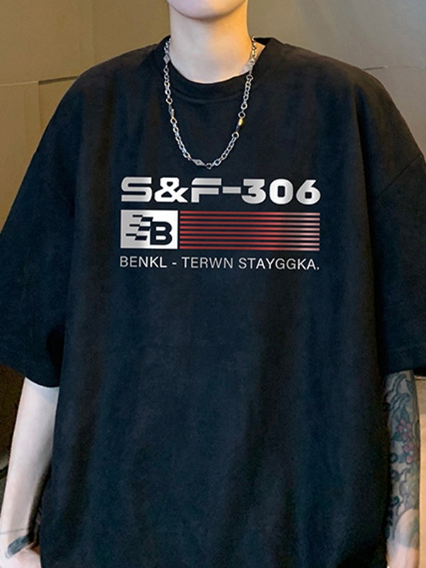 Sé el primero en valorar “Camiseta extragrande de manga corta con letras a rayas para hombre”