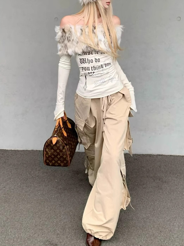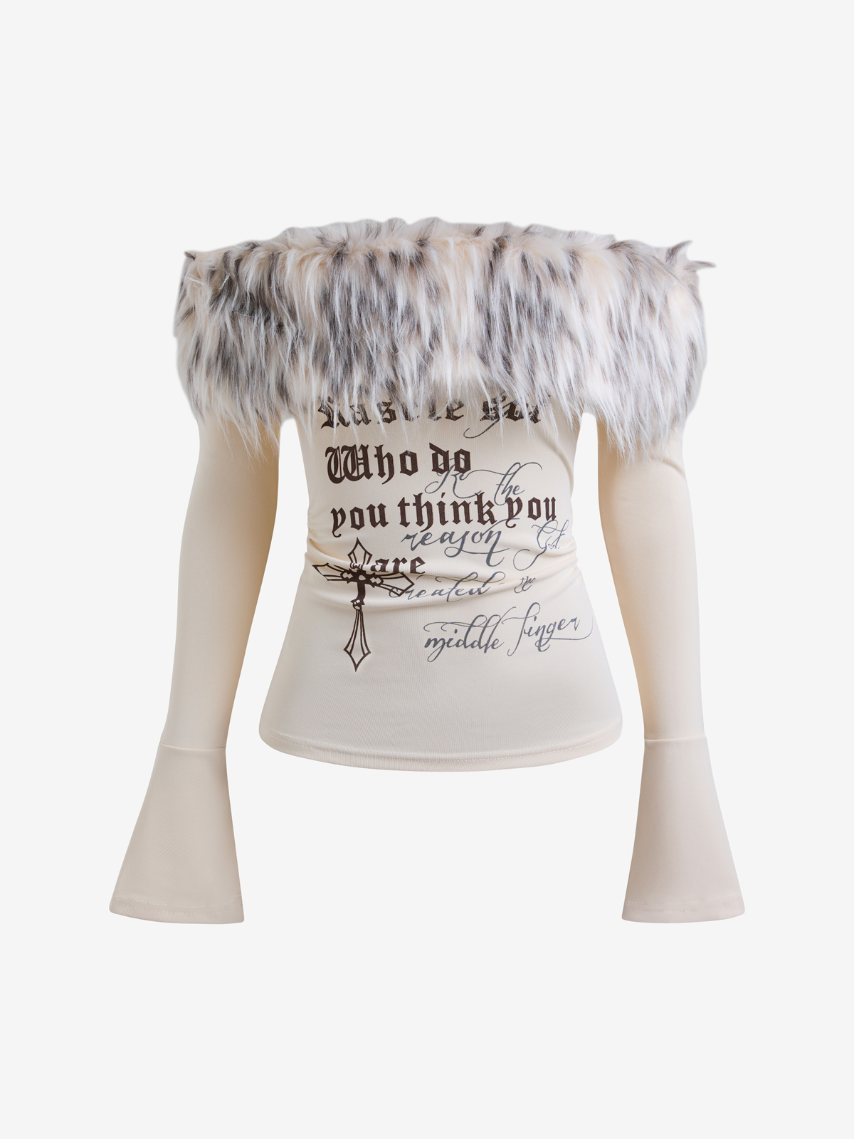 Cuello de piel de chica sexy con estampado de letras y manga larga
