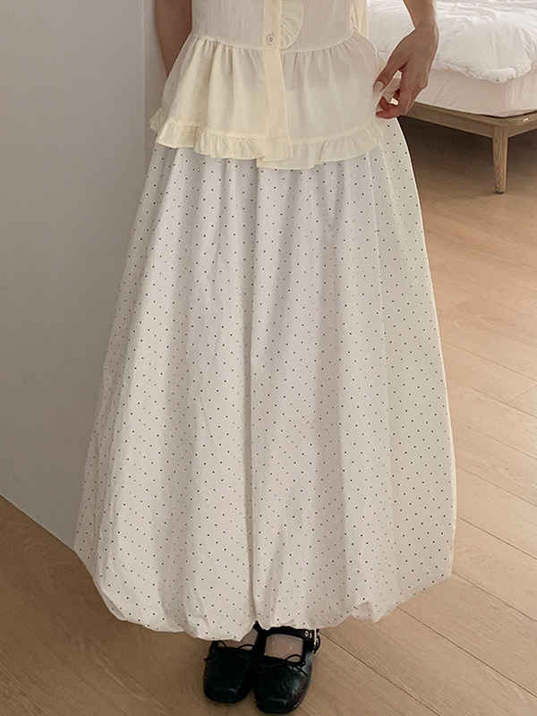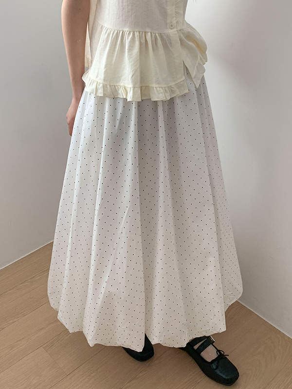Sé el primero en valorar “Dulce chica con falda larga de lunares blancos”