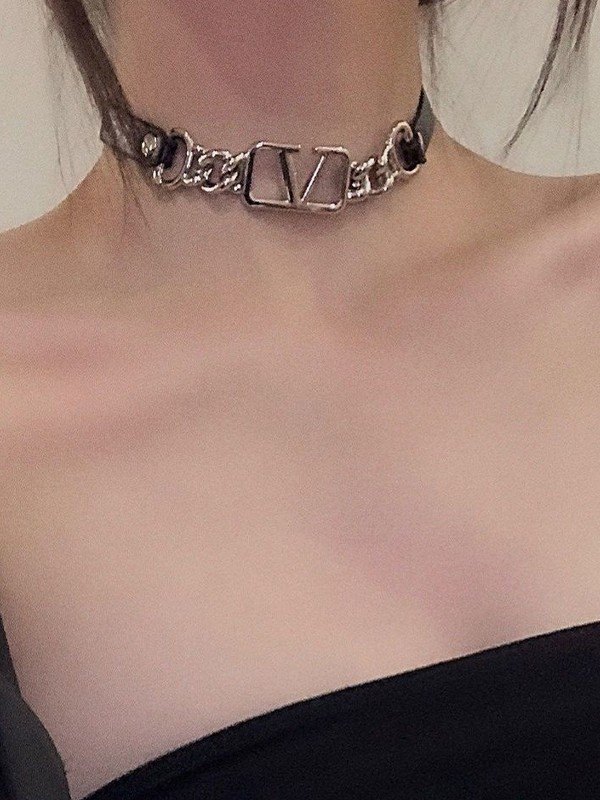 Gargantilla de piel sintética con diseño de logotipo plateado