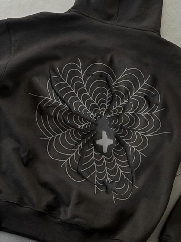 Diseño único: La sudadera con capucha presenta un estampado de telaraña genial, lo que le da un toque de estilo urbano único.