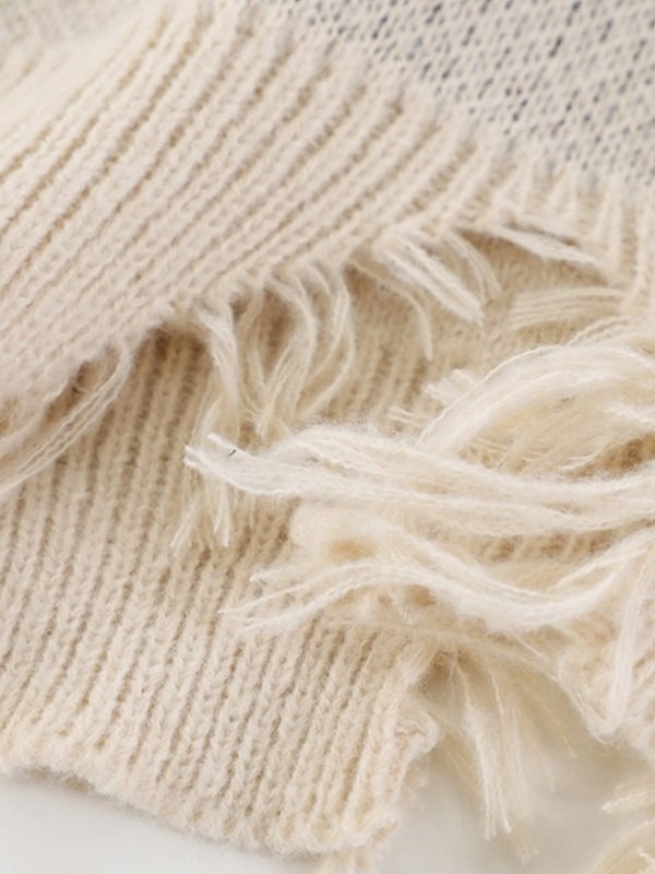 Descripción: Con una estética grunge oscura, estos elegantes jerséis de estilo urbano confeccionados con tejido de punto de algodón, cortes en una silueta relajada, cuentan con un diseño de ribetes deshilachados, mangas largas caídas y detalles de jacquard con diseño de cruz alada.