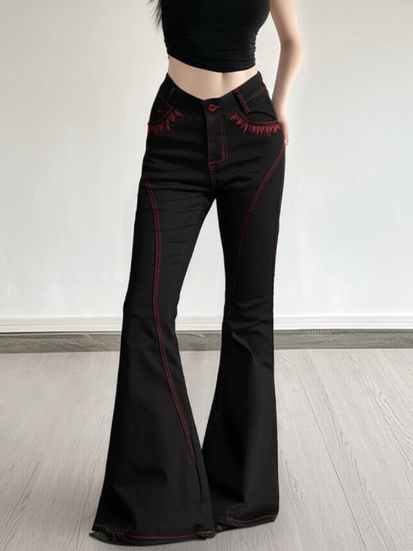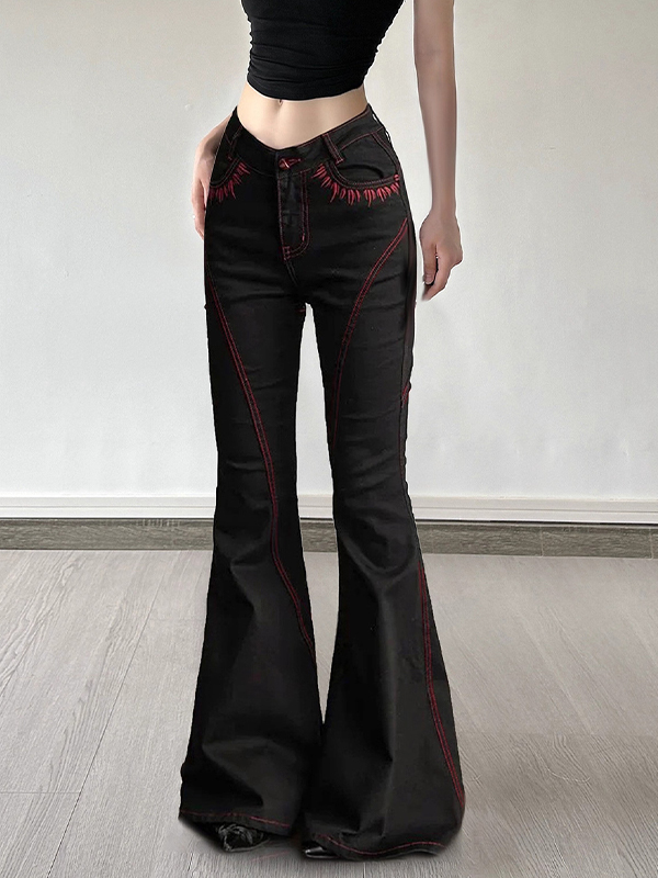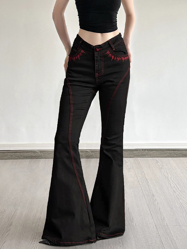 Sé el primero en valorar “Vaqueros acampanados con bordado de diseño oscuro”