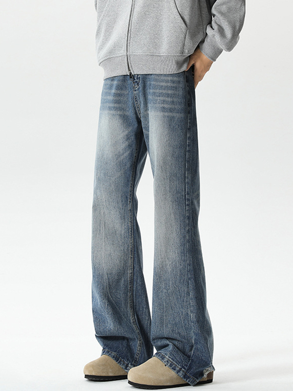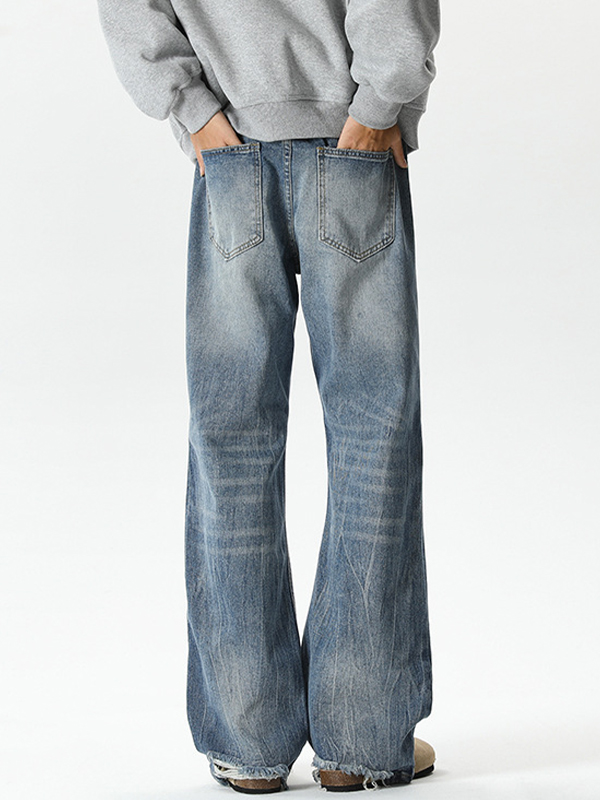 Vaqueros holgados ligeramente levantados con bigotes de gato lavados estilo retro americano