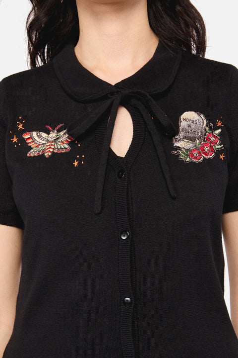 Cardigan con posizionamento tatuaggi per la notte di Ognissanti
